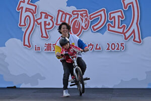 また,同時に開催された『ちゃりフェスin浦安クリテリウム』では,自転車の乗り方教室や交通ルールを学べるブース,ステージショーなどが行われ,子どもたちも楽しんでルールを学びました。