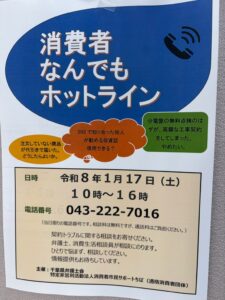 本日は,私が所属しております千葉県弁護士会が主催する『消費者なんでもホットライン』のご案内です。