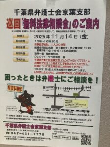 本日は,私が所属しております千葉県弁護士会京葉支部が主催する『無料法律相談会』のご案内です。