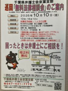 本日は,私が所属しております千葉県弁護士会京葉支部が主催する『無料法律相談会』のご案内です。