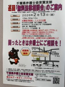 本日は,私が所属しております千葉県弁護士会京葉支部が主催する『無料法律相談会』のご案内です。