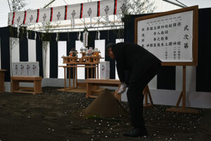 式典では,浦安市長が鍬入れの儀を行うなど,工事が無事に完了するように安全を祈願しました。