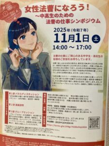 本日は,私が所属しております関東弁護士会連合会が主催する『女性法曹になろう!!シンポジウム』のご案内です。
